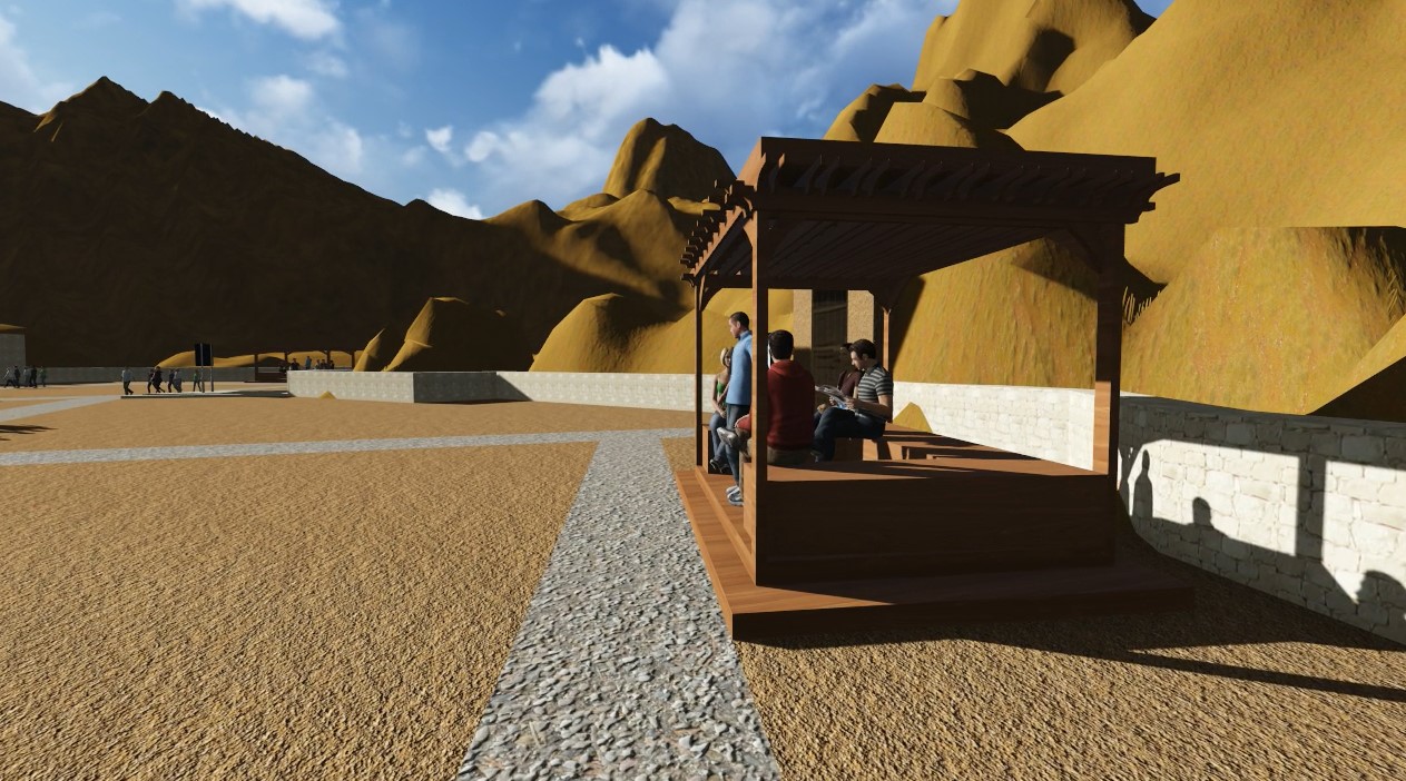 The “Qurna North Complex” would accommodate large groups. With minimal interjection, thirteen (13) tombs could be prepared and added to the number of tombs already prepared for visitors to accept large groups of visitors (i.e., large busses). As part of the complex, there will be a designated shaded staging area that will contain new mastabas. Here, the tour leader can lecture their groups while the visitors rest in the shade on mastaba benches. The site will contain signage, solar powered security lighting, tomb lighting and improved access.