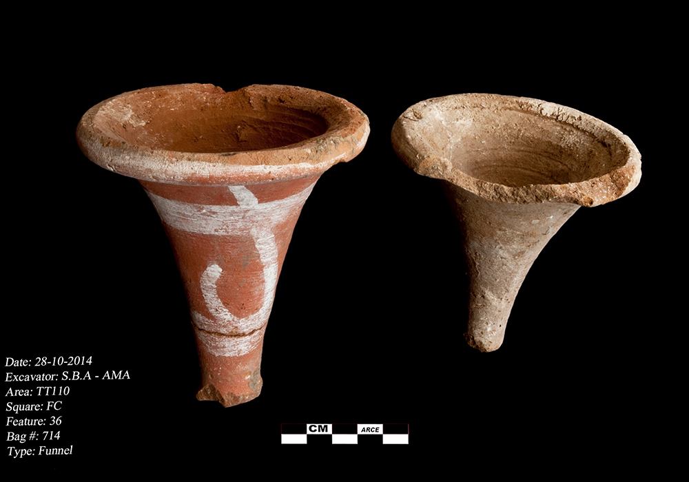 During the archaeological excavation and consolidation operations that were taking place for the group of tombs in the Qurna area in Luxor Egypt, many small objects were found within the strata. The objects consisted of different materials such as clay, plaster, wood, bone, and faience. All objects were studied and scientifically registered in a data base designed by Adam Shearman personnel. All objects were handed over to the competent government agencies after first aid, restoration and maintenance processes were completed. Many of the objects were prepared to be displayed in museums.