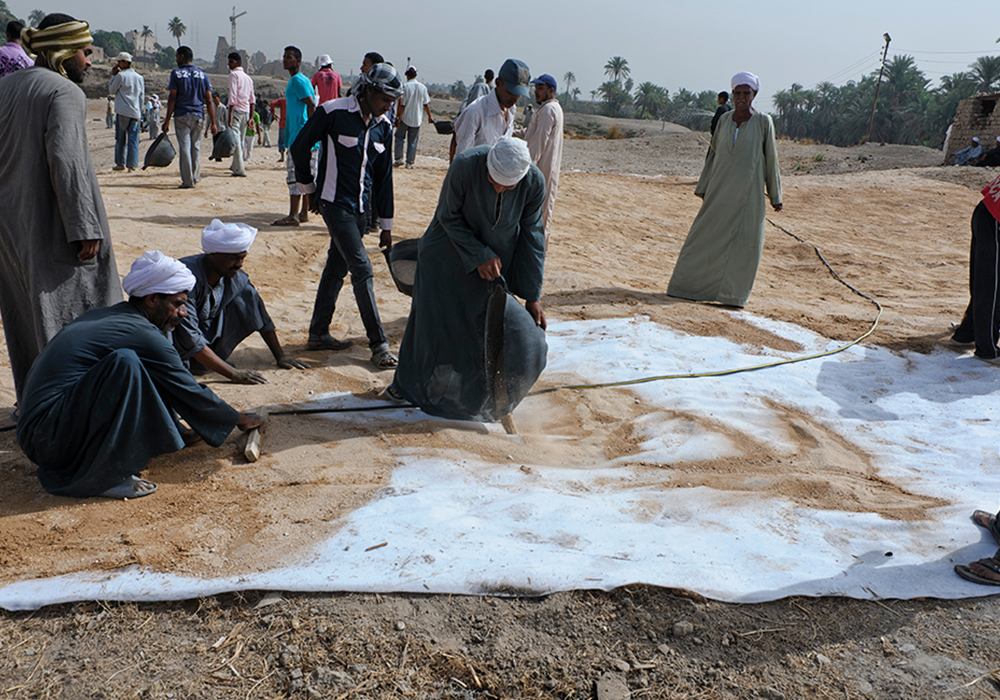 Mut Temple, which is part of the Karnak Complex, was closed to the public and not suited for tourist visitation. To open the temple and allow tourist visitation entailed draining and cleaning the weed infested Mut Sacred Lake and keep the weeds from growing back by placing a liner under a soil layer so as to eliminate or decrease uncontrollable weed growth. New pathways were created including a new sandstone axis walkway. A mastaba and signage completed the improvement and the temple was open to the public.