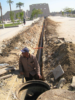 Monitored possible effects of groundwater lowering project in the Karnak Temple Complex. Designed, furnished and installed groundwater lowering system in front of Karnak Temple