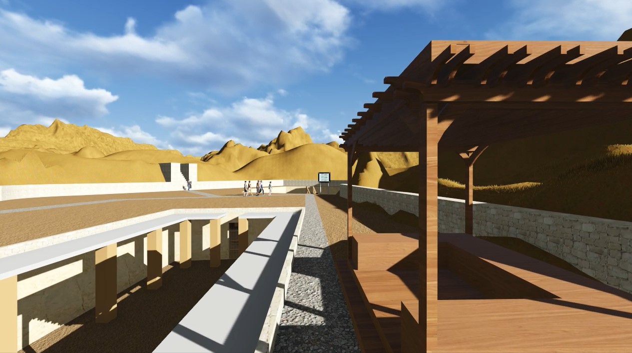 The “Qurna North Complex” would accommodate large groups. With minimal interjection, thirteen (13) tombs could be prepared and added to the number of tombs already prepared for visitors to accept large groups of visitors (i.e., large busses). As part of the complex, there will be a designated shaded staging area that will contain new mastabas. Here, the tour leader can lecture their groups while the visitors rest in the shade on mastaba benches. The site will contain signage, solar powered security lighting, tomb lighting and improved access.