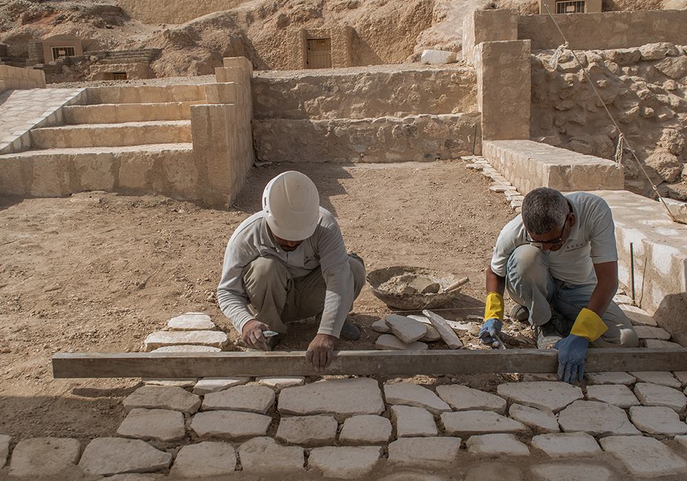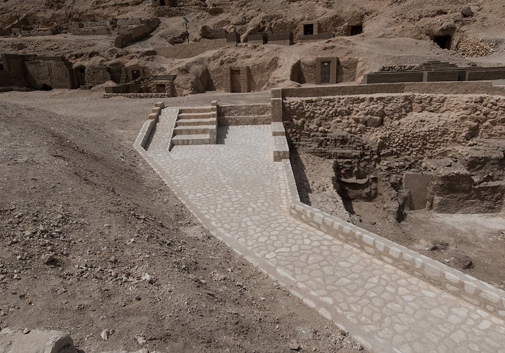 Site improvements included new shaded mastabas for visitors and improved access to newly opened tombs in upper areas. Approximately 1,800 locals were temporarily employed for the project duration. The project was immensely successful being on time and under budget.