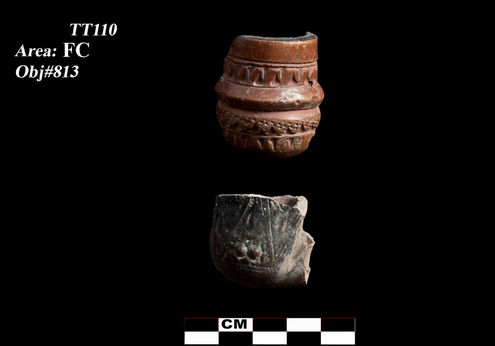 During the archaeological excavation and consolidation operations that were taking place for the group of tombs in the Qurna area in Luxor Egypt, many small objects were found within the strata. The objects consisted of different materials such as clay, plaster, wood, bone, and faience. All objects were studied and scientifically registered in a data base designed by Adam Shearman personnel. All objects were handed over to the competent government agencies after first aid, restoration and maintenance processes were completed. Many of the objects were prepared to be displayed in museums.