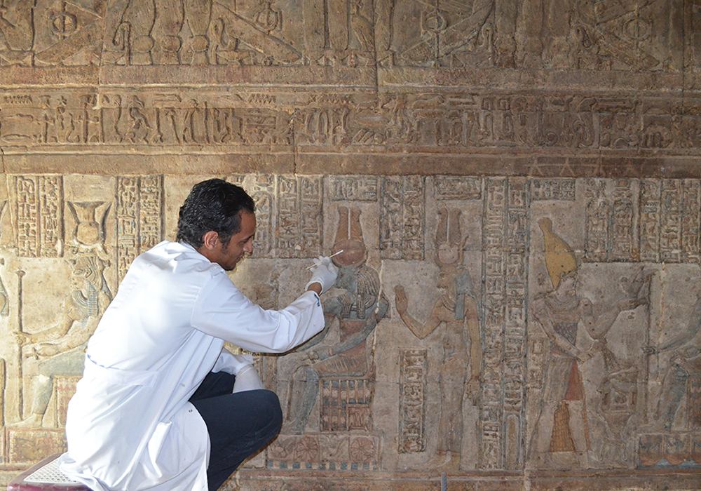 Improvements included humane removal of the bat infestation, capping the enclosure wall with new mud brick to protect the old, patching and restoring the remnants of the proto pylon, removal of the old mud brick guard shack and constructing a new small building with a WC for tourists, room for the guards and the ministry inspectors, new entrance to the temple, new parking area and walkway, new signage and complete conservation of the Isis Temple. The program included conservation training and temporary jobs to lessen the impact of the 2011 Egyptian Revolution and subsequent drop in tourism.