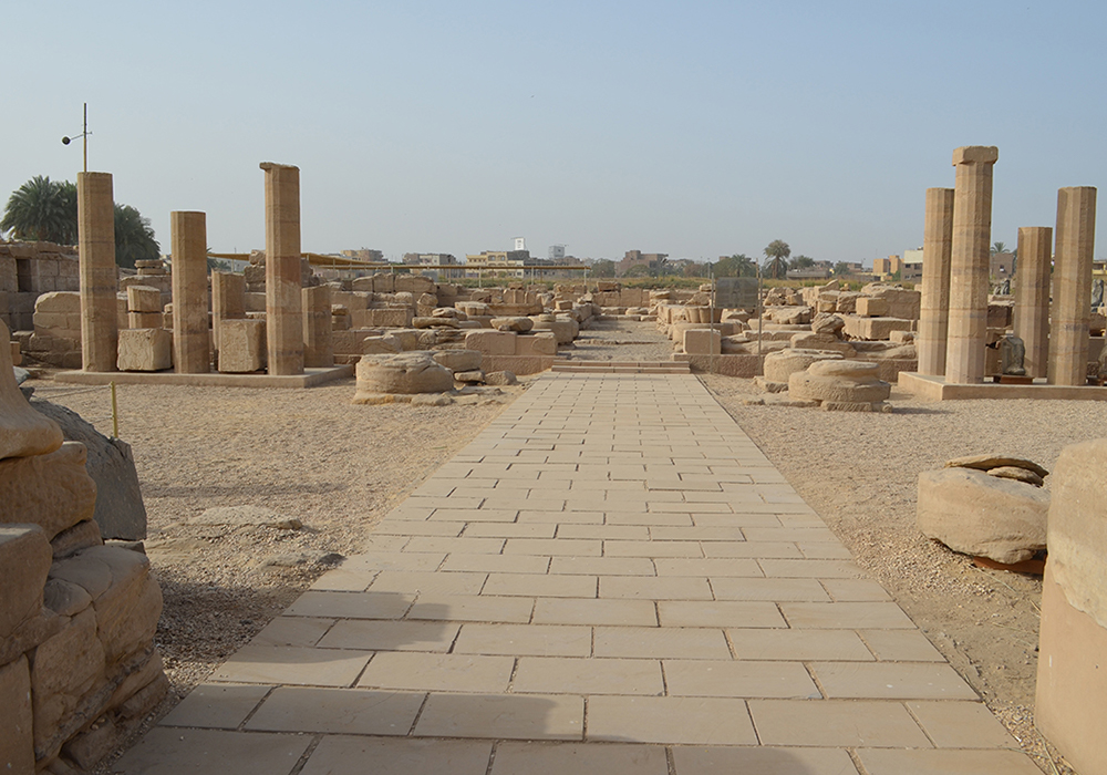 Mut Temple, which is part of the Karnak Complex, was closed to the public and not suited for tourist visitation. To open the temple and allow tourist visitation entailed draining and cleaning the weed infested Mut Sacred Lake and keep the weeds from growing back by placing a liner under a soil layer so as to eliminate or decrease uncontrollable weed growth. New pathways were created including a new sandstone axis walkway. A mastaba and signage completed the improvement and the temple was open to the public.