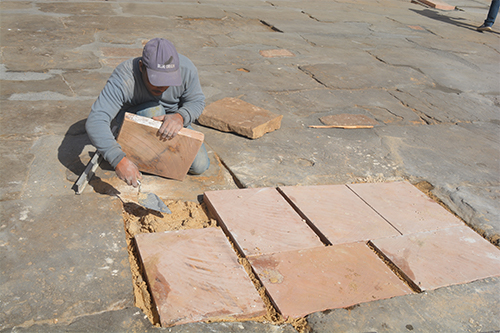 With our good reputation in conservation, Arab Contractors requested Adam Shearman to remove staining and missing sections in the stone forecourt flooring. This was encouraged and approved by the construction management firm under the engineering design group CDM Smith. The project was part of a USAID financed Groundwater Lowering Project. Pre-investigation, testing and analysis was conducted first to assess the treatment. Adam Shearman worked with Ministry of Tourism and Antiquities conservators as part of a training scenario. The project was on time and under budget.